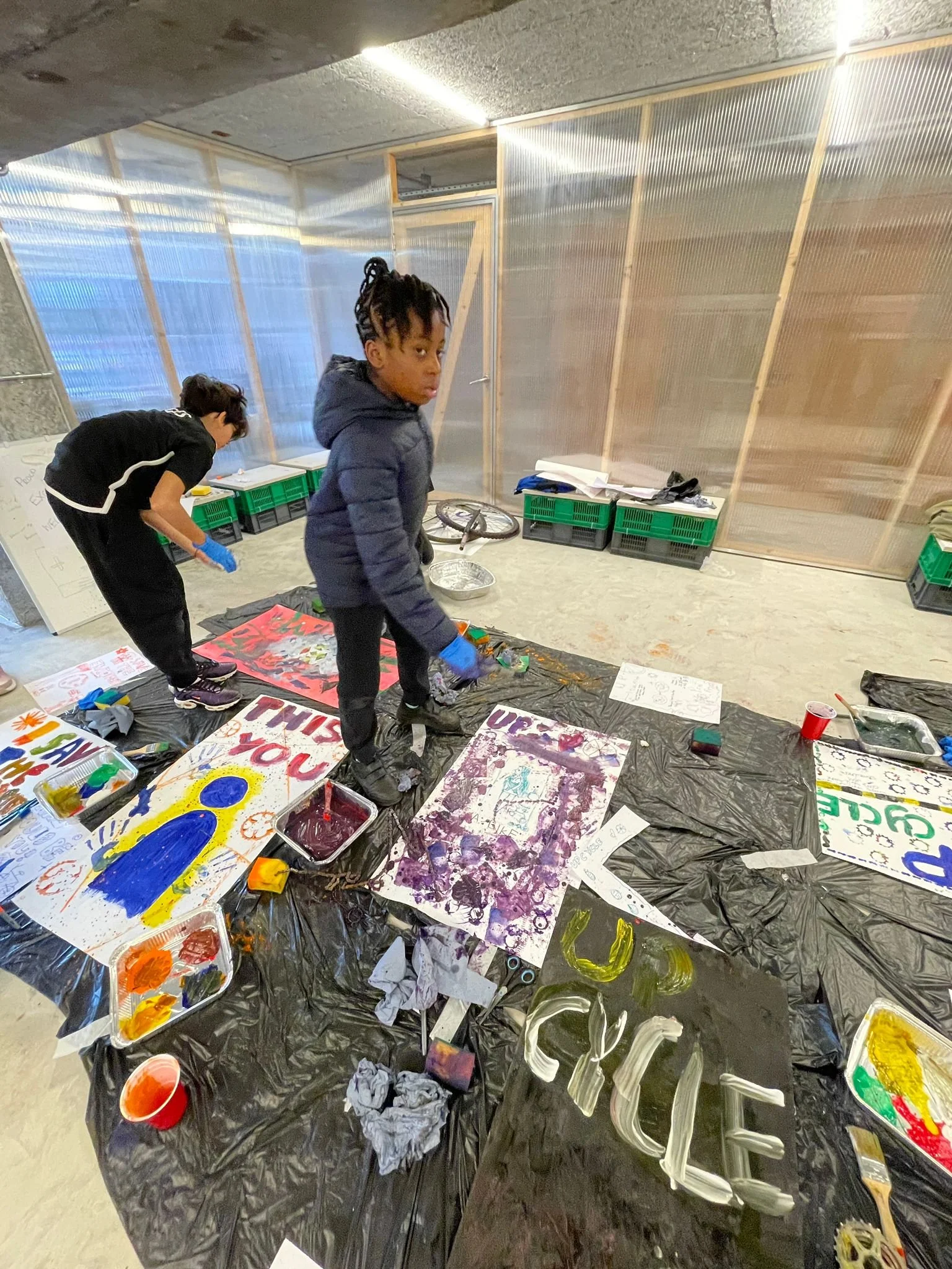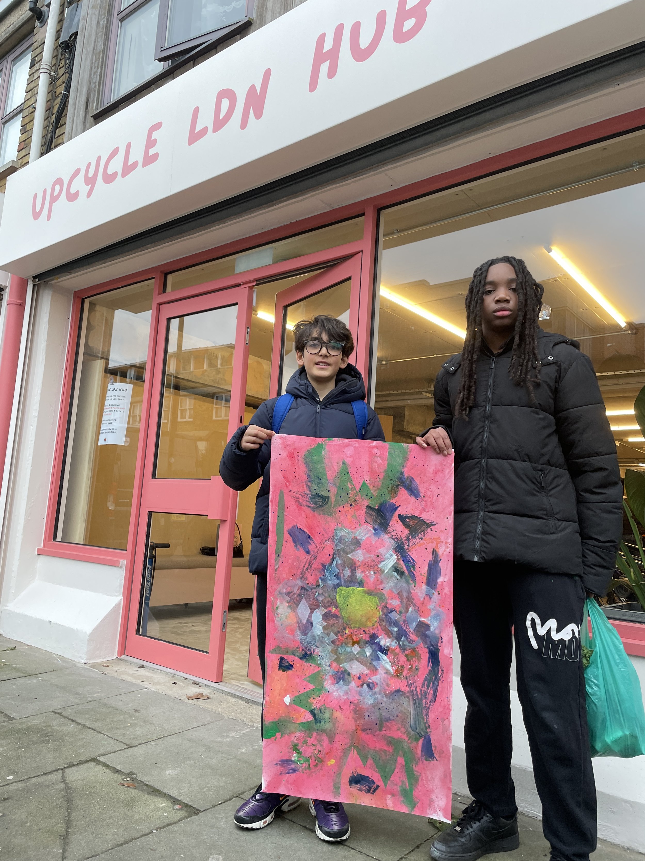 We returned to partnership working with an art workshop at the upCYCLE LDN hub. Using reclaimed bike parts and materials, young people explored paint, texture and design in a space that encouraged bold expression without fear of making a mess.