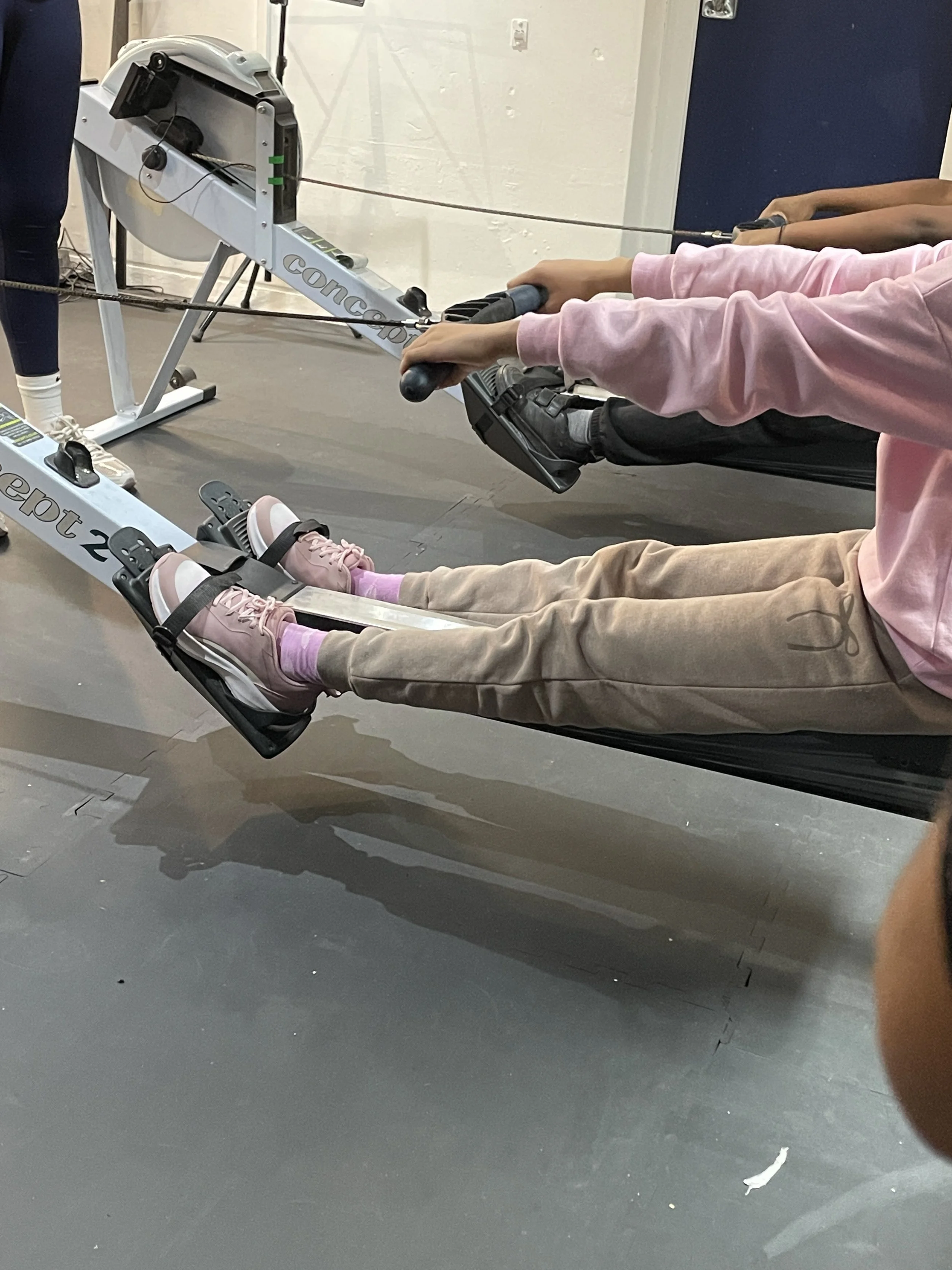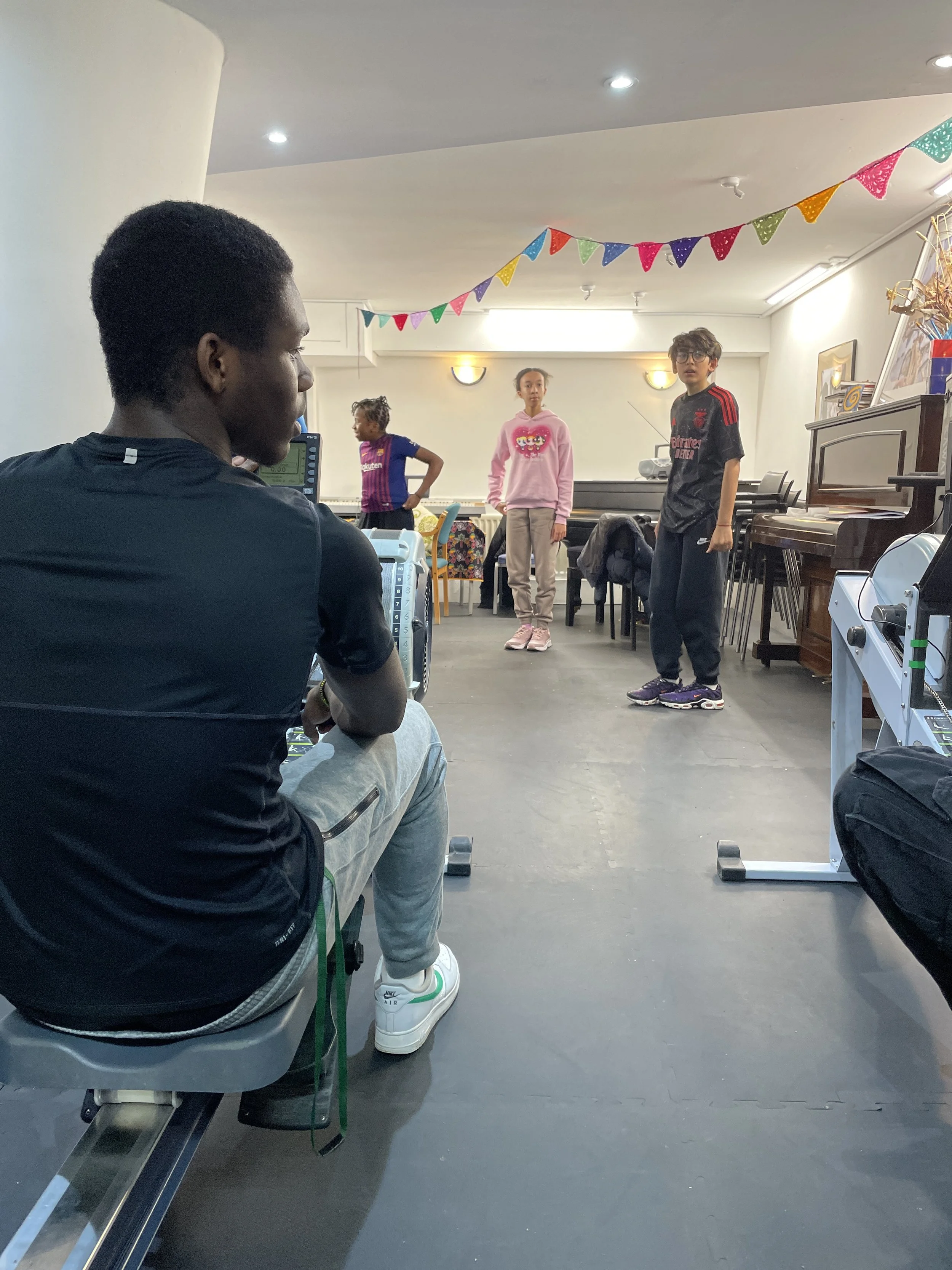 The afternoon shifted into strength and conditioning with Tida Sullivan, a former Brixton Wings member now giving back as a coach and role model. The session focused on preparing for the London Youth Games indoor competition, incorporating a demanding 3 x 3 minute rowing circuit alongside additional conditioning and stretching.